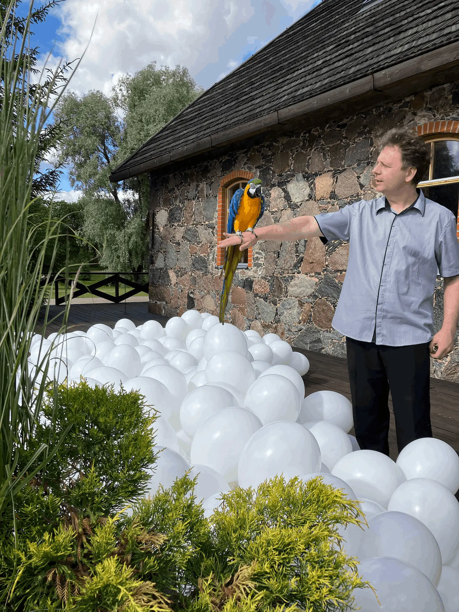Sünnipäev, perega koosistumine, firmapidu vm sündmus - üllatage oma peolisi unikaalsete külalistega ning elevust ja vahvaid emotsioone on garanteeritud! Peremees tutvustab teile papagoi maailma ja räägib palju põnevat nendest imelistest sulelistest. Kaasas on kaks suurt papagoid- aara Mac ja aafrika hall Millie, kes ei suuda oma jutu või väikeste trikitamistega kedagi külmaks jätta 🥰 ja kui seltskonnas on lapsi, siis kindlasti võtame kaasa ka mõned kääbusküülikud ja merisead, kes ootavad paitamist.
