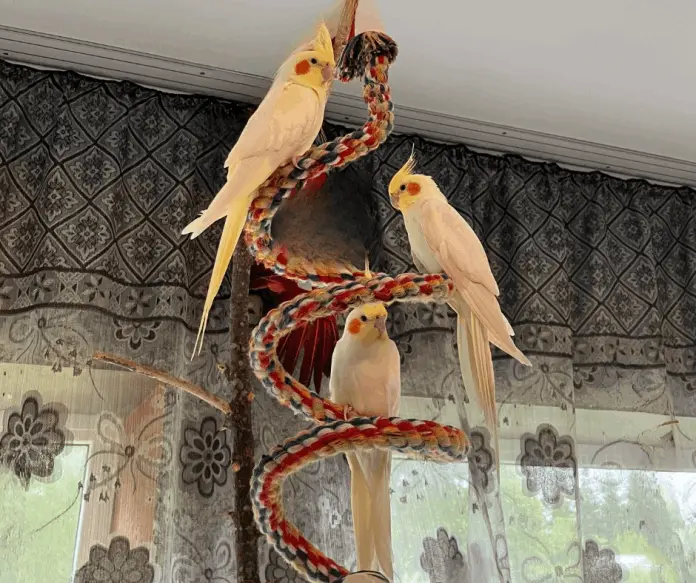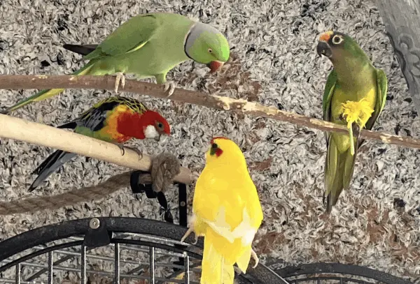 “Üks pere” oleme sõna otseses mõttes, sest kõik meie karvased ja sulelised elavad pererahvaga ühises kodus, mitte õues aedikus või aiamajakestes. Meid külastades koged seda, mida igapäevane elu lemmikloomadega (ja veel sellises koguses!) toob: siutsumine, laulmine, kuskil keegi lendab üle pea, keegi (tavaliselt Millie, Mac või Robbie) tuleb õlale või laulab: “Palju õnne!” või ütleb: “I love you!”, keegi kudrutab meie “linnupuul” või haugub koera häälega või hoopis haugubki meie pisike rõõmus perekoer ise 🙃 Ja siis loomulikult veel need armsad merisead ja jänksud- karvapallid, kes kogu aeg pai lunivad. Igav ei ole meil kunagi!